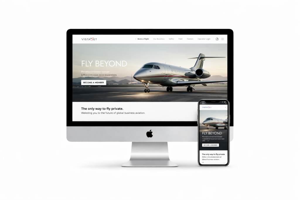 This project is a premium aviation website design inspired by industry-leading platforms like VistaJet, focused on delivering a luxury digital experience for private jet charter services.